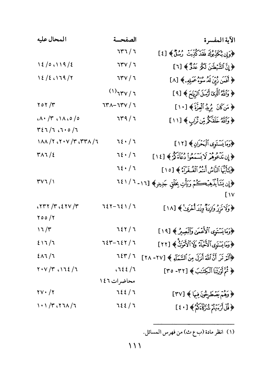 {ثُمَّ أَوْرَثْنَا الْكِتَابَ} [٣٢ - ٣٥] ... ٦/ ٦٤٤، محاضرات ١٤٦ ... ٦/ ١٦٤، ٣/ ٢٠٧