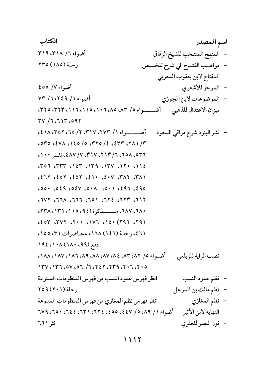 - نشر البنود شرح مراقي السعود ... أضواء ١/ ٢٧٣، ٣١٧، ٢/ ٦٥، ٣٥٢، ٤١٨، ٣/ ٢٨١، ٤٣٣، ٤/ ٣٢٥، ٥/ ١٤٥، ٤٧٨، ٥٣٥، ٥٣٦، ٦٥٨، ٦/ ٢١٣، ٣١٧، ٧/ ٤٨٧، نثر ١٠٠، ١١٤، ١٢٠، ١٣٧، ١٣٩، ١٤٣، ٣٣٣، ٣٥٦، ٣٨١، ٣٨٢، ٤٠٧، ٤١٠، ٤٤٢، ٤٥٢، ٤٦٢، ٤٩٥، ٤٩٦، ٥٠١، ٥٠٨، ٥٤٧، ٥٤٩، ٥٥٠، ٦١٢، ٦٢٣، ٦٢٤، ٦٥١، ٦٦٦، ٦٦٨، ٦٧٢، ٦٨٠، ٦٨٧، مذكرة (٩٤، ١١٥، ١٣١، ٢٣٨، ٢٩١، ٢٩٦) ١٤٠، ١٧٦، ٢٠١، ٣٧٢، ٤٥٣، ٤٦١، رحلة (١٤١) ١٦٨، محاضرات ٣١، ١٥٥، دفع (٩٩، ١٨٠) ١٠٨، ١٩٤