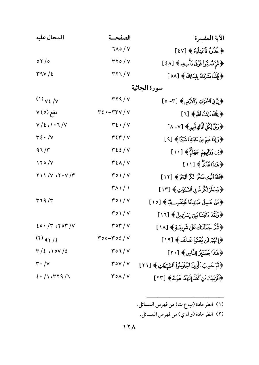 {ثُمَّ جَعَلْنَاكَ عَلَى شَرِيعَةٍ} [١٨] ... ٧/ ٣٥٣ ... ٧/ ٢٥٣، ٣/ ٤٥٠