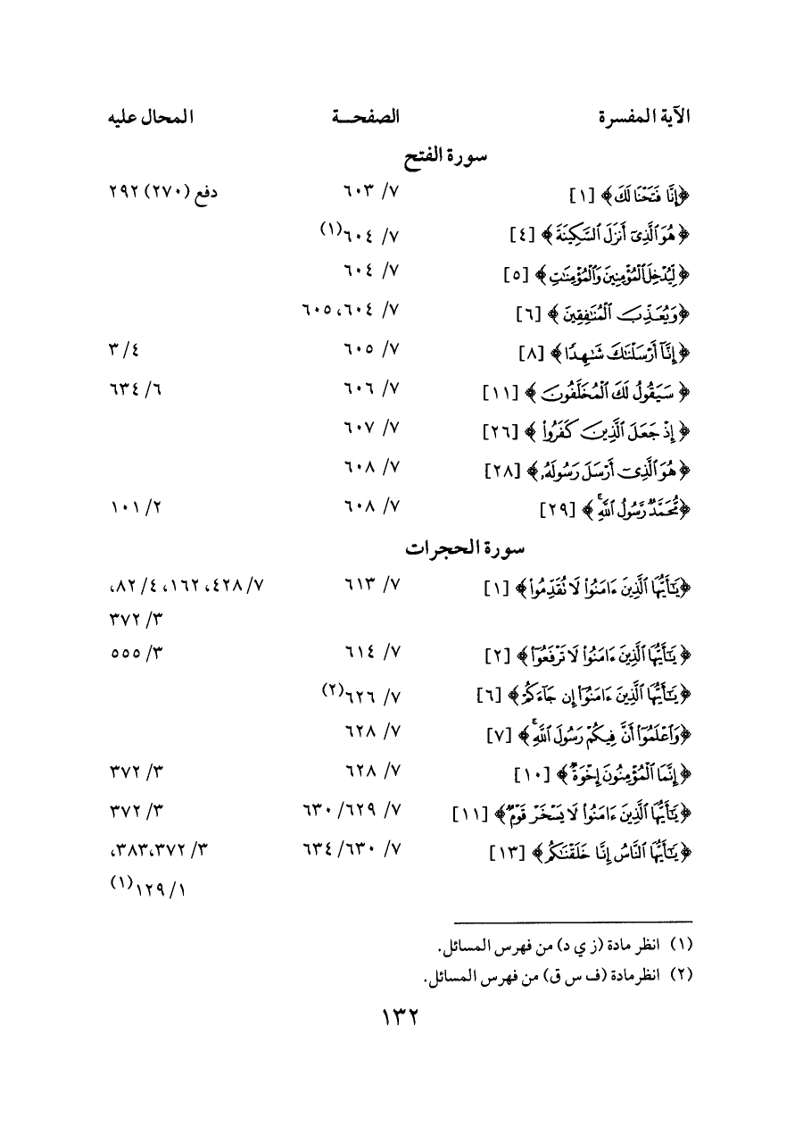 {يَاأَيُّهَا الَّذِينَ آمَنُوا لَا تُقَدِّمُوا} [١] ... ٧/ ٦١٣ ... ٧/ ٤٢٨، ١٦٢، ٤/ ٨٢، ٣/ ٣٧٢