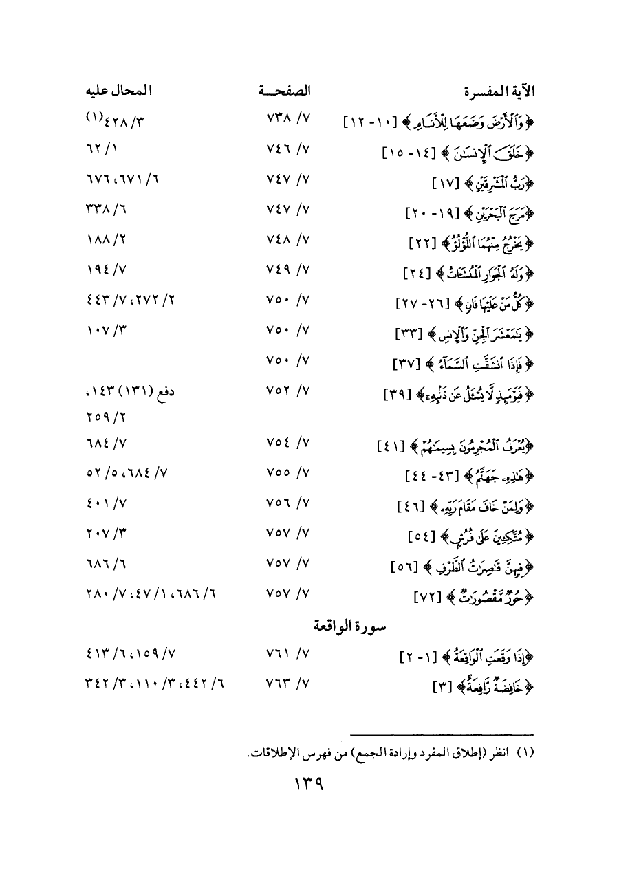 {إِذَا وَقَعَتِ الْوَاقِعَةُ} [١ - ٢] ... ٧/ ٧٦١ ... ٧/ ١٥٩، ٦/ ٤١٣