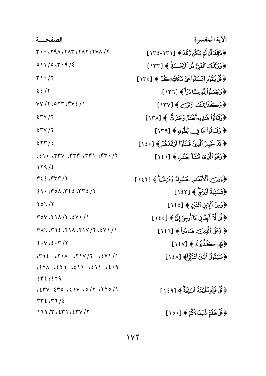 {ذَلِكَ أَنْ لَمْ يَكُنْ رَبُّكَ} [١٣١ - ١٣٤] ... ٢/ ٢٧٨، ٢٨٢، ٢٨٣، ٢٩٨، ٣٠٠
