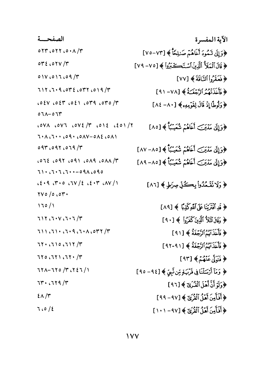{وَإِلَى مَدْيَنَ أَخَاهُمْ شُعَيْبًا} [٨٥ - ٨٩] ... ٣/ ٥٨٨، ٥٨٩، ٥٩١، ٥٩٢، ٥٦٤، ٥٩٥، ٥٩٨ - ٦٠٠، ٦٠٦، ٦١٠