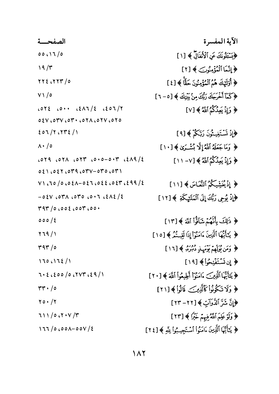 {يَسْأَلُونَكَ عَنِ الْأَنْفَالِ} [١] ... ٥/ ١٦، ٥٥