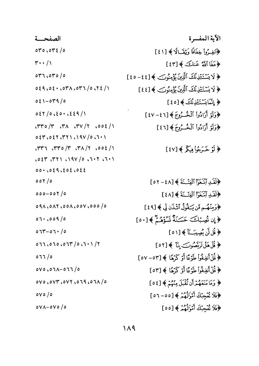 {وَلَوْ أَرَادُوا الْخُرُوجَ} [٤٦] ... ١/ ٥٥٤، ٢/ ٣٧، ٣٨، ٣/ ٣٣٥، ٦٠١، ٥/ ١٩٧، ٣٢١، ٥٤٢، ٥٤٣
