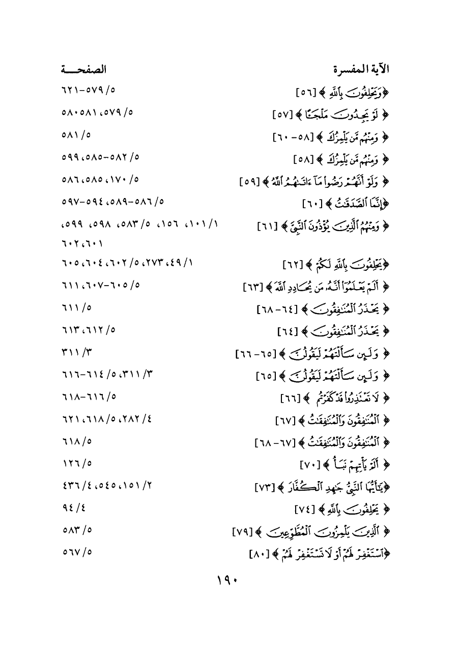 {يَاأَيُّهَا النَّبِيُّ جَاهِدِ الْكُفَّارَ} [٧٣] ... ٢/ ١٥١، ٥٤٥، ٤/ ٤٣٦