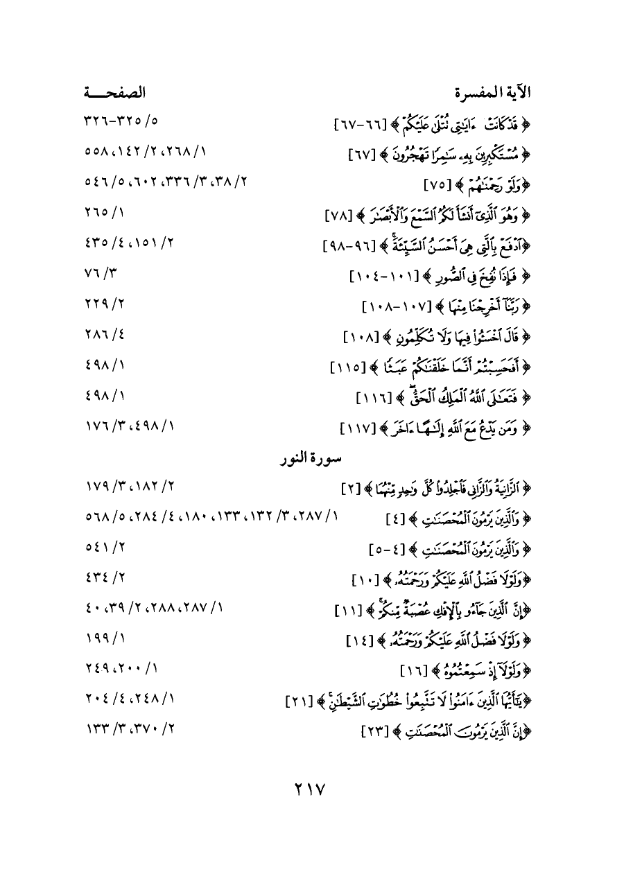 {وَالَّذِينَ يَرْمُونَ الْمُحْصَنَاتِ} [٤] ... ١/ ٢٨٧، ٣/ ١٣٢، ١٣٣، ١٨٠، ٤/ ٢٨٤، ٥/ ٥٦٨