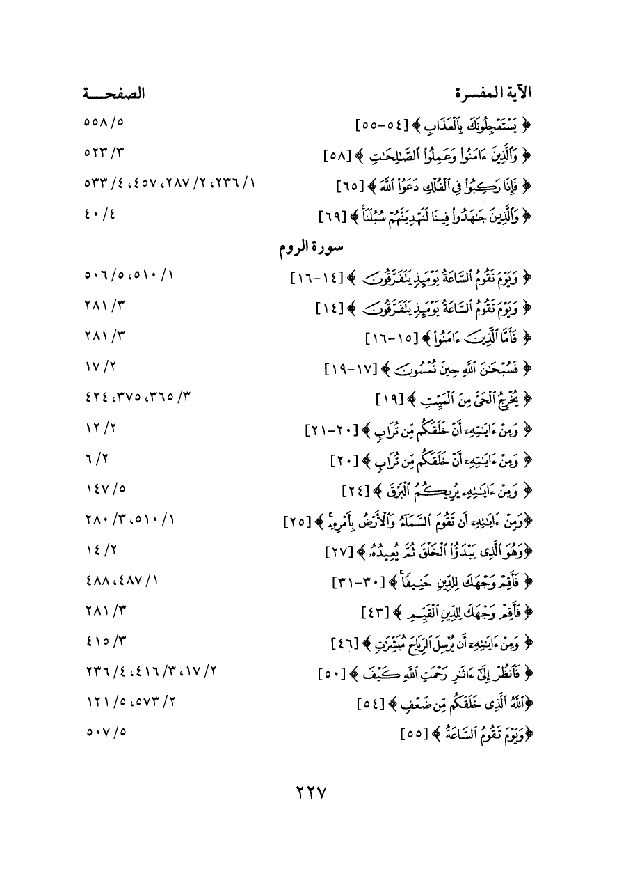 {وَيَوْمَ تَقُومُ السَّاعَةُ يَوْمَئِذٍ يَتَفَرَّقُونَ} [١٤ - ١٦] ... ١/ ٥١٠، ٥/ ٥٠٦