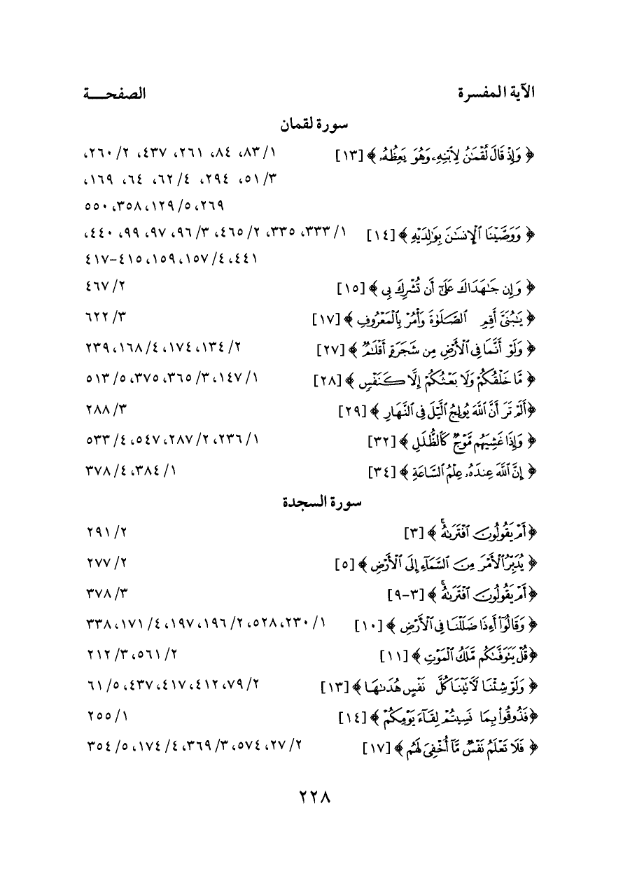 {وَإِذْ قَالَ لُقْمَانُ لِابْنِهِ وَهُوَ يَعِظُهُ} [١٣] ... ١/ ٨٣، ٨٤، ٢٦١، ٤٣٧، ٢/ ٢٦٠، ٣/ ٥١، ٢٩٤، ٤/ ٦٢، ٦٤، ١٦٩، ٢٦٩، ٥/ ١٢٩، ٣٥٨، ٥٥٠