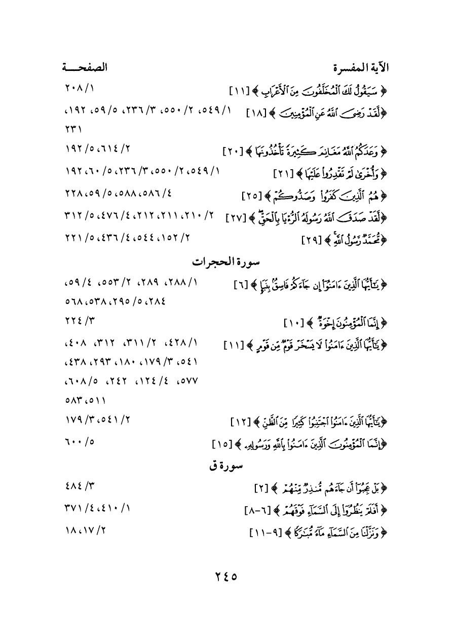 {لَقَدْ رَضِيَ اللَّهُ عَنِ الْمُؤْمِنِينَ} [١٨] ... ١/ ٥٤٩، ٢/ ٥٥٠، ٣/ ٢٣٦، ٥/ ٥٩، ١٩٢، ٢٣١