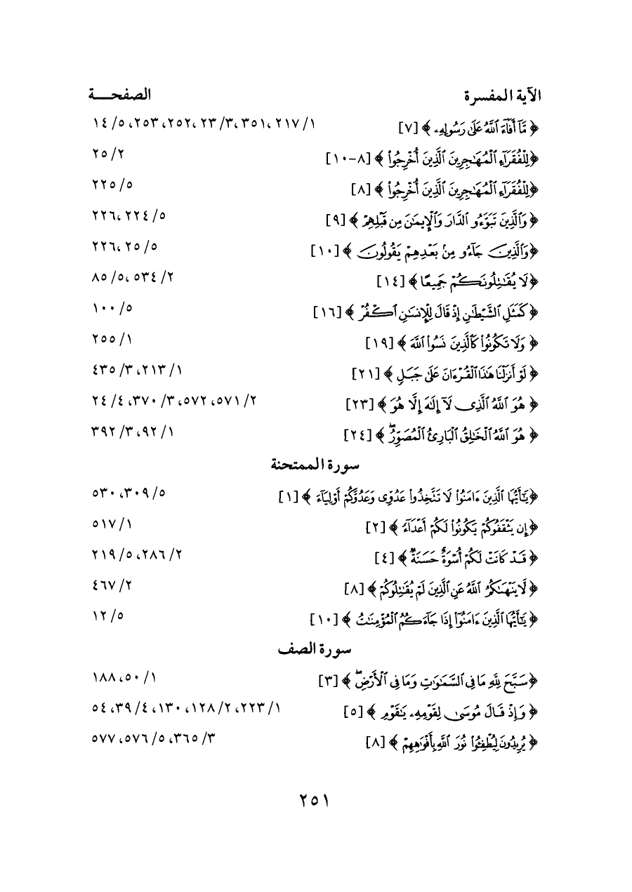 {مَا أَفَاءَ اللَّهُ عَلَى رَسُولِهِ} [٧] ... ١/ ٢١٧ ,٣٥١ ,٣/ ٢٣ ,٢٥٢، ٢٥٣، ٥/ ١٤