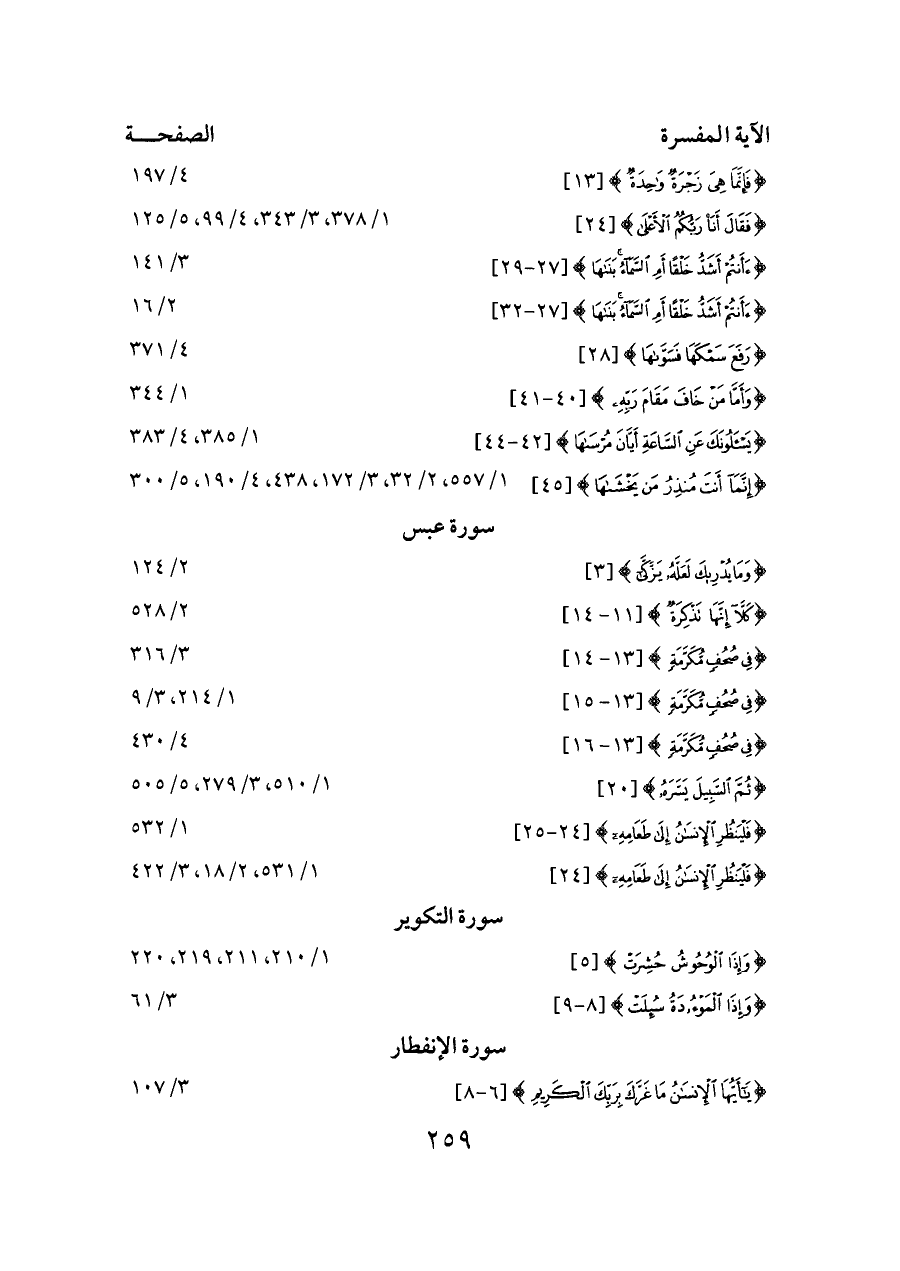 {إِنَّمَا أَنْتَ مُنْذِرُ مَنْ يَخْشَاهَا} [٤٥] ... ١/ ٥٥٧، ٢/ ٣٢، ٣/ ١٧٢، ٤٣٨، ٤/ ١٩٠، ٥/ ٣٠٠