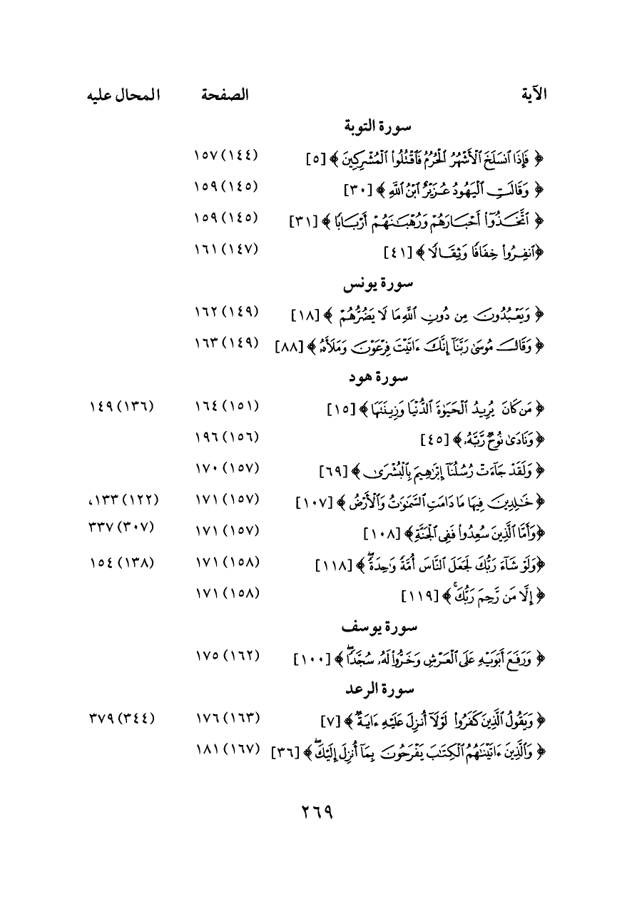 {مَنْ كَانَ يُرِيدُ الْحَيَاةَ الدُّنْيَا وَزِينَتَهَا} [١٥] ... (١٥١) ١٦٤ ... (١٣٦) ١٤٩