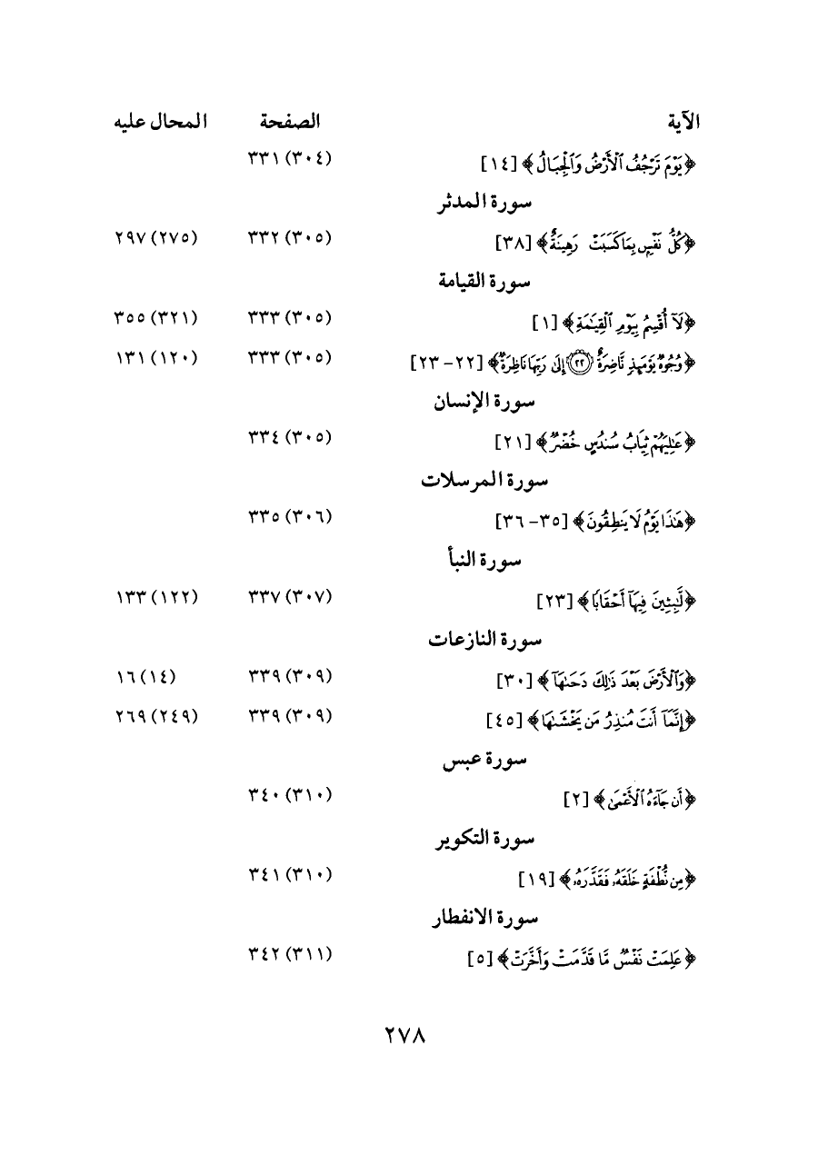 {إِنَّمَا أَنْتَ مُنْذِرُ مَنْ يَخْشَاهَا} [٤٥] ... (٣٠٩) ٣٣٩ ... (٢٤٩) ٢٦٩