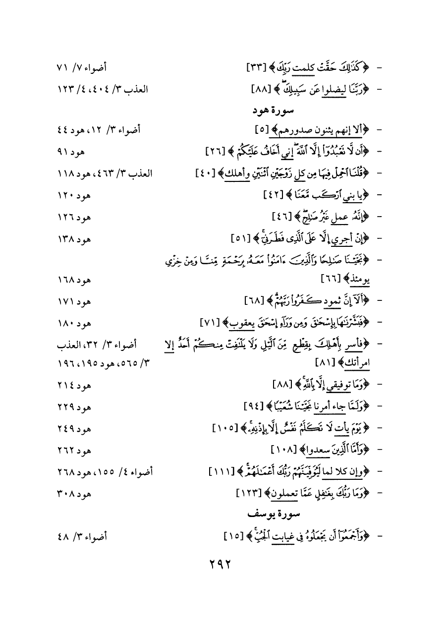 - {وإن كلا لما لَيُوَفِّيَنَّهُمْ رَبُّكَ أَعْمَالَهُمْ} [١١١] ... أضواء ٤/ ١٥٥، هود ٢٦٨