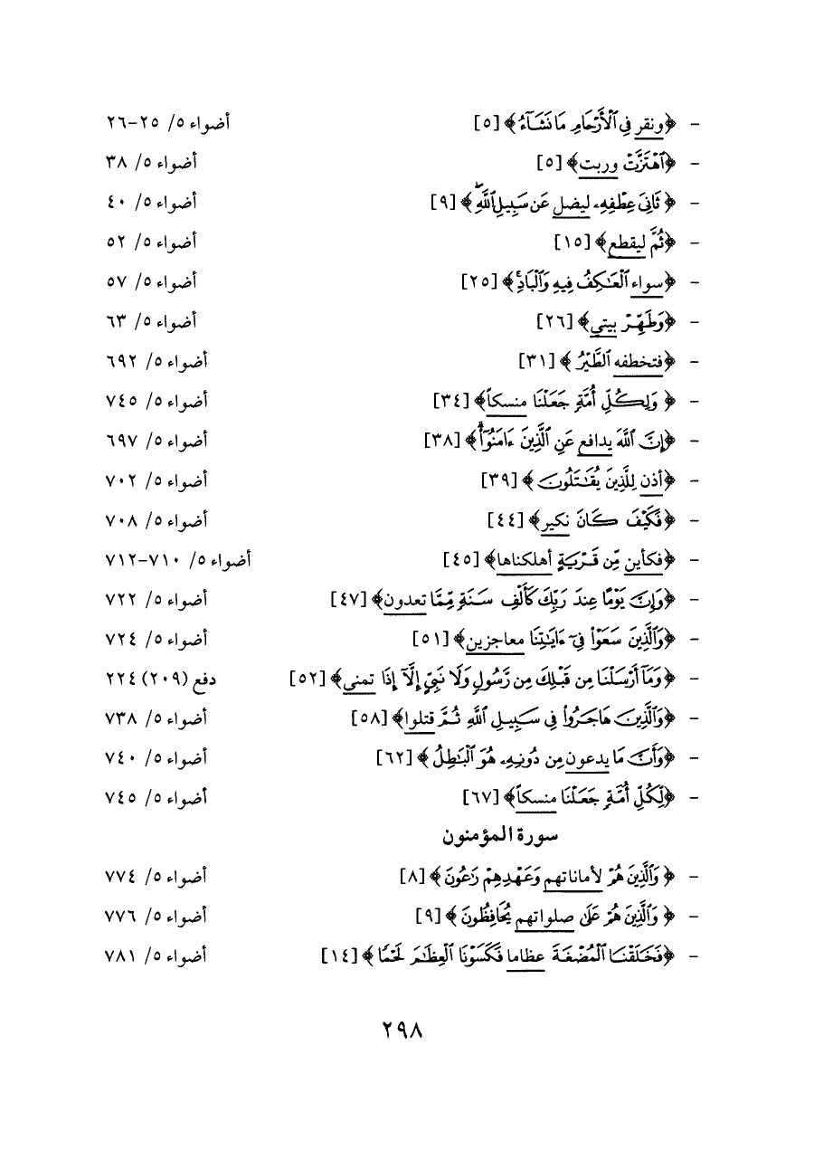 - {إِنَّ اللَّهَ يدافع عَنِ الَّذِينَ آمَنُوا} [٣٨] ... أضواء ٥/ ٦٩٧