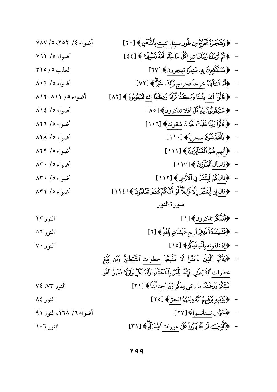 - {وَشَجَرَةً تَخْرُجُ مِنْ طُورِ سيناء تنبت بِالدُّهْنِ} [٢٠] ... أضواء ٤/ ٢٥٢، ٥/ ٧٨٧