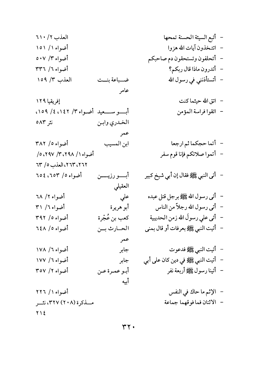 - أتموا صلاتكم فإنا قوم سفر ... أضواء ١/ ٢٩٨، ٣/ ٢٩٧، ٥/ ٢٦٢، ٢٦٣، العذب ٥/ ٦٣