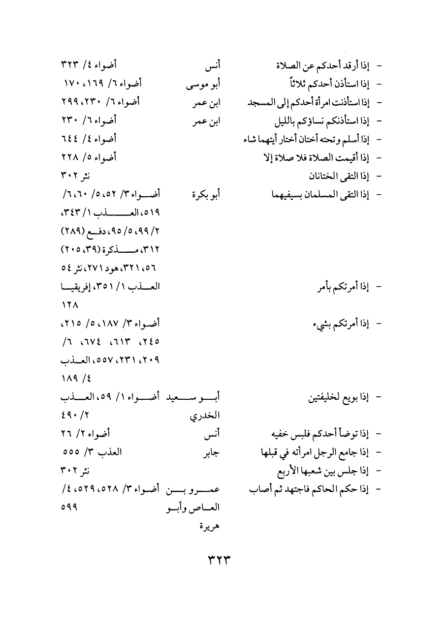 - إذا أمرتكم بشيء ... أضواء ٣/ ١٨٧، ٥/ ٢١٥، ٢٤٥، ٦١٣، ٦٧٤، ٦/ ٢٠٩، ٢٣١، ٥٥٧، العذب ٤/ ١٨٩