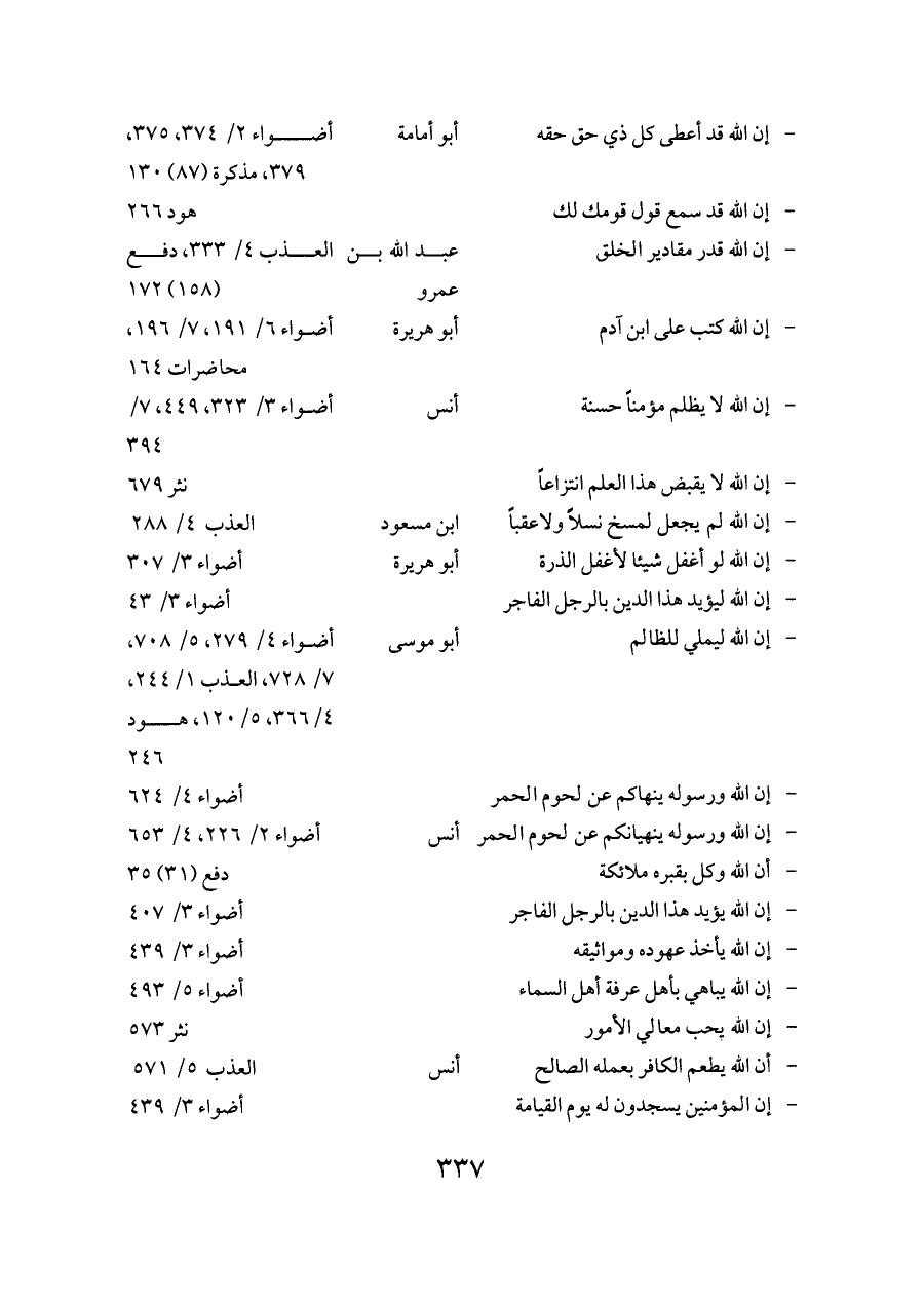 - إن الله كتب على ابن آدم ... أبو هريرة ... أضواء ٦/ ١٩١، ٧/ ١٩٦، محاضرات ١٦٤