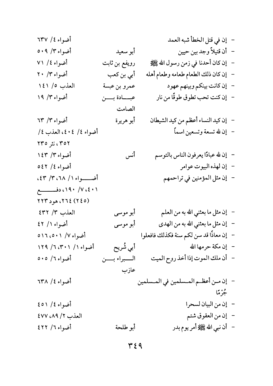 - إن مثل المؤمنين في تراحمهم ... أضواء ١/ ٦٨، ٣/ ٤٣، ٤٠١، ٧/ ١٩٠، دفع (٢٤٥) ٢٦٤، هود ٢٢٣