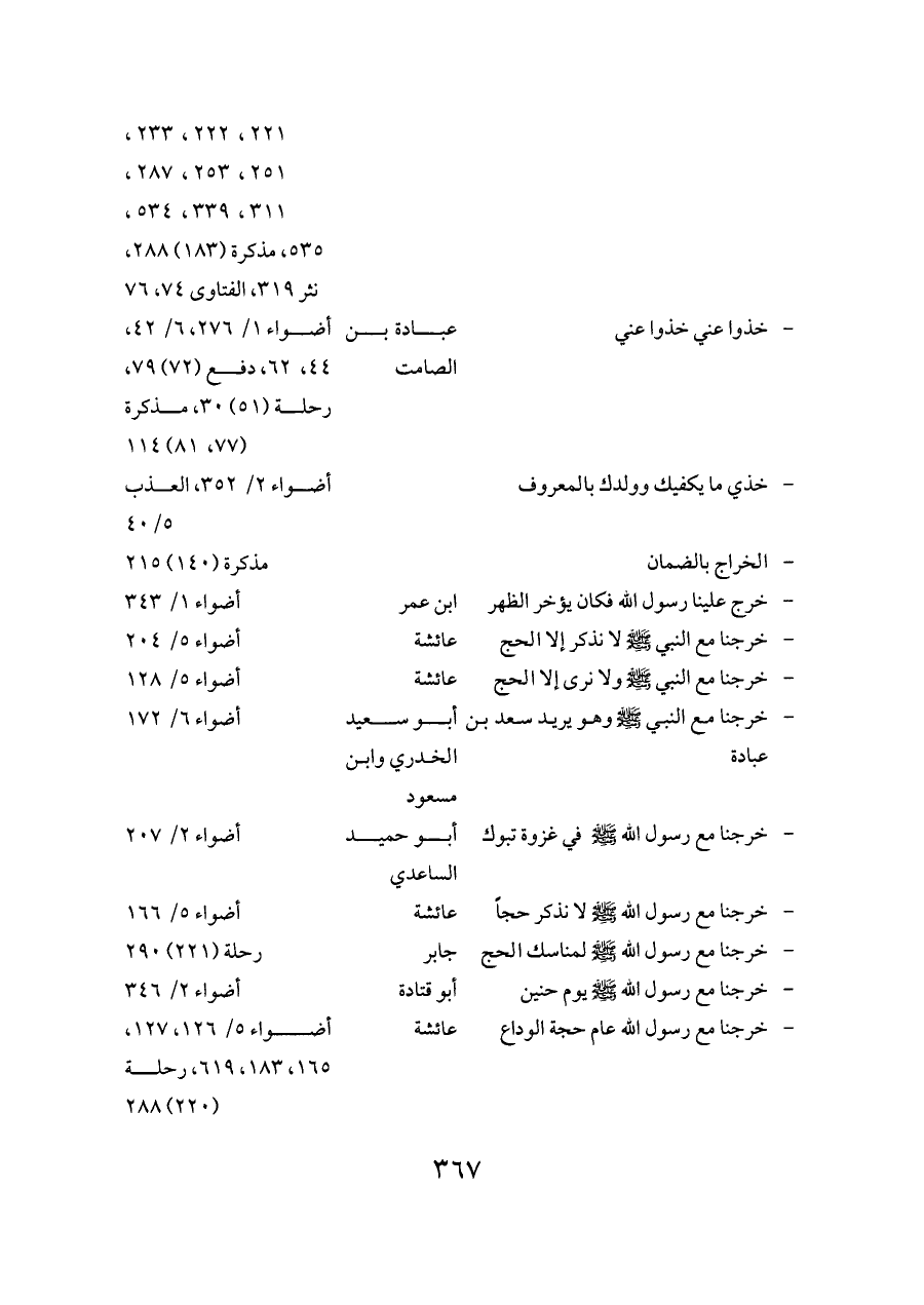 - خذوا عني خذوا عني ... عبادة بن الصامت ... أضواء ١/ ٢٧٦، ٦/ ٤٢، ٤٤، ٦٢، دفع (٧٢) ٧٩، رحلة (٥١) ٣٠، مذكرة (٧٧، ٨١) ١١٤