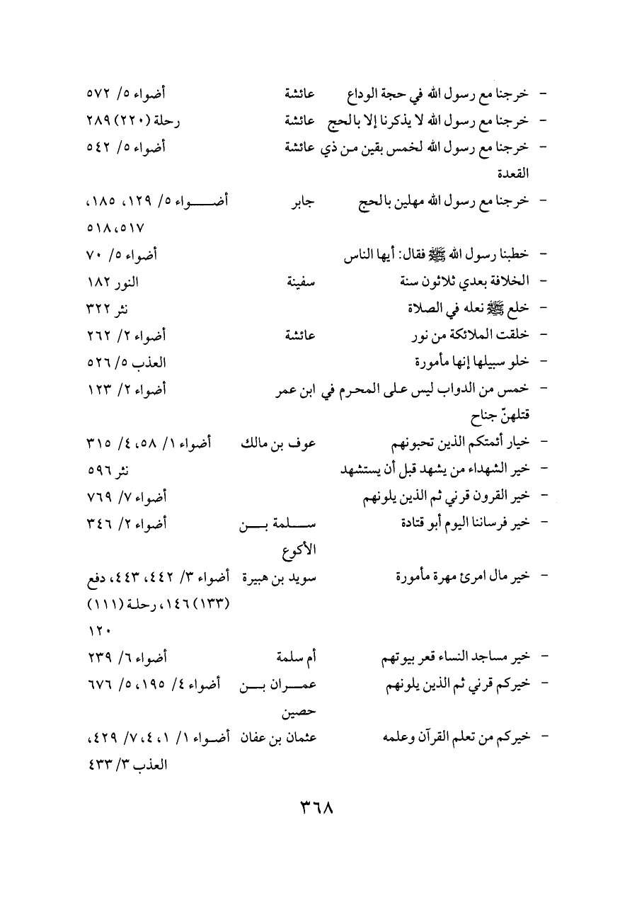 - خيركم قرني ثم الذين يلونهم ... عمران بن حصين ... أضواء ٤/ ١٩٥، ٥/ ٦٧٦