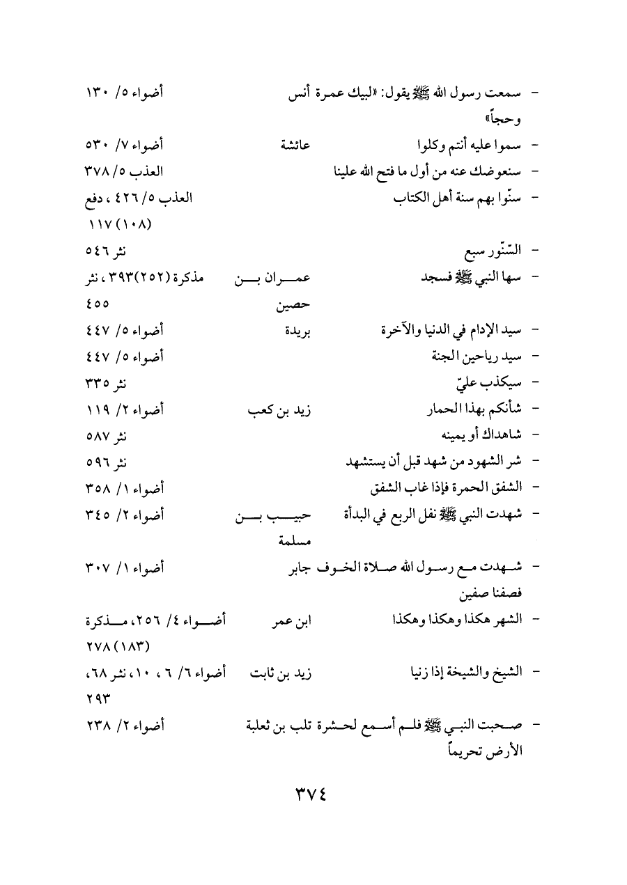 - صحبت النبي - صلى الله عليه وسلم - فلم أسمع لحشرة الأرض تحريماً ... تلب بن ثعلبة ... أضواء ٢/ ٢٣٨