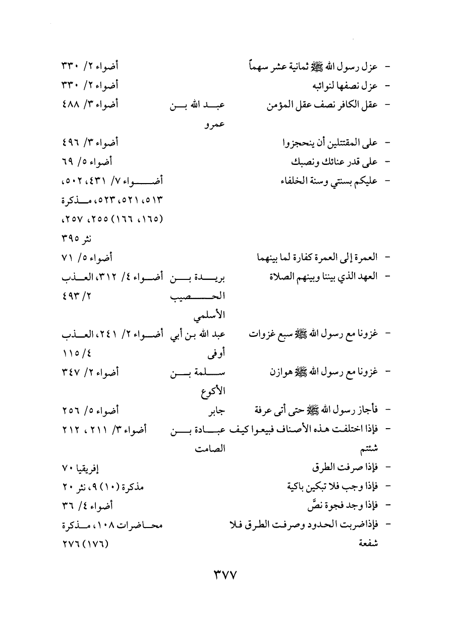 - عزل رسول الله - صلى الله عليه وسلم - ثمانية عشر سهماً ... أضواء ٢/ ٣٣٠