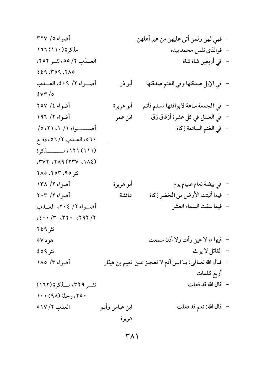 - في الإبل صدقتها وفي الغنم صدقتها ... أبو ذر ... أضواء ٢/ ٤٠٩، العذب ٥/ ٤٧٣