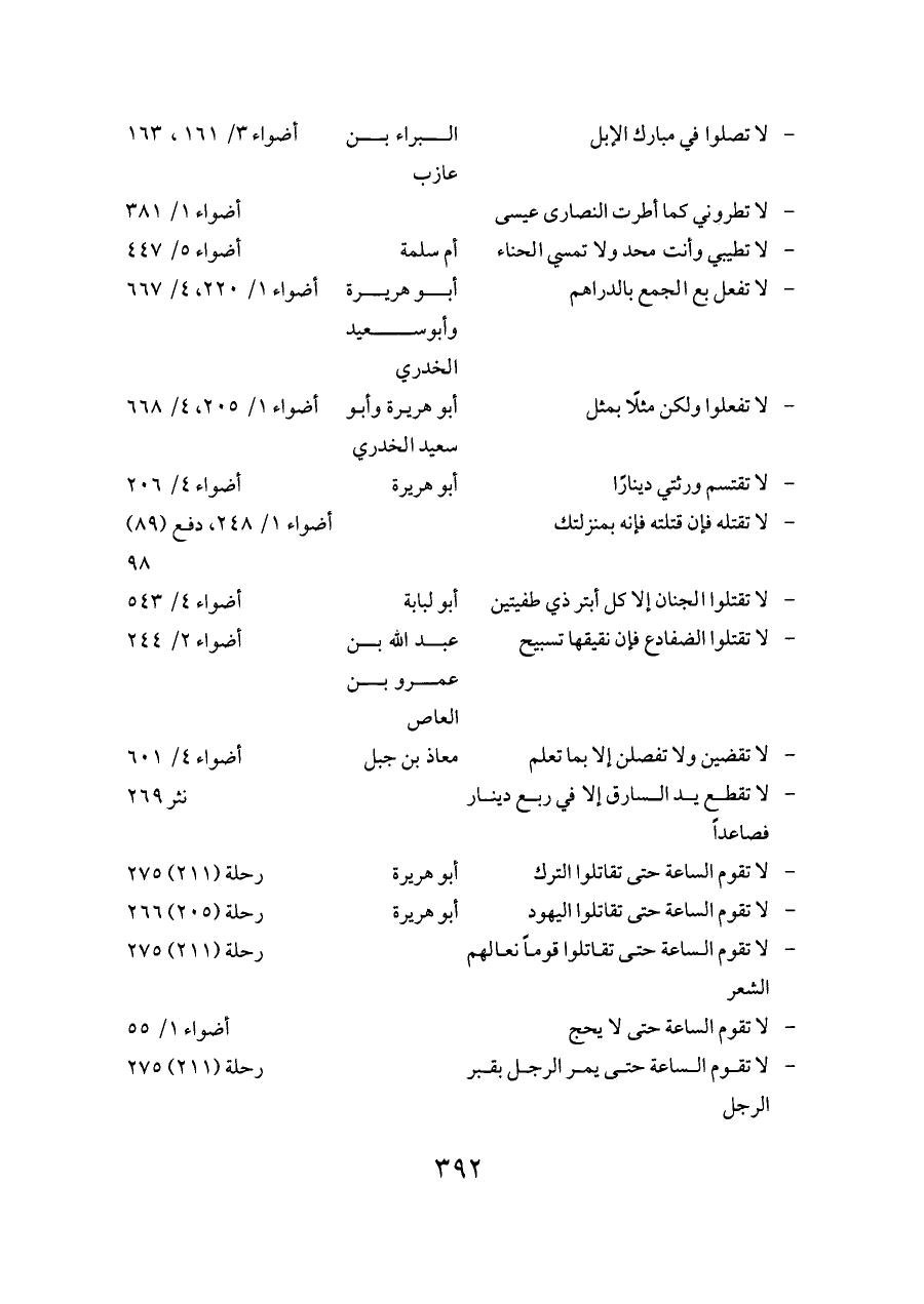 - لا تصلوا في مبارك الإبل ... البراء بن عازب ... أضواء ٣/ ١٦١، ١٦٣