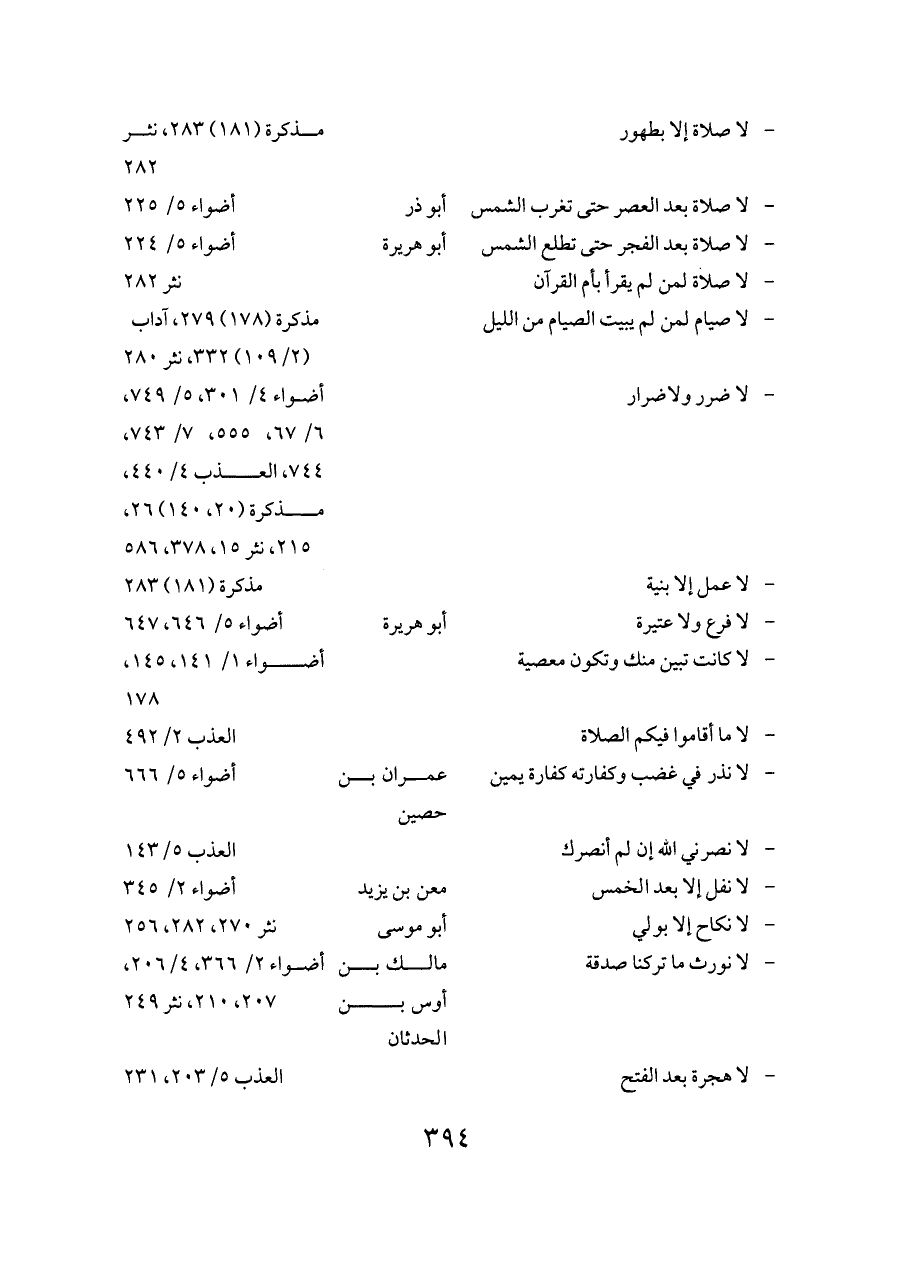 - لا ضرر ولاضرار ... أضواء ٤/ ٣٠١، ٥/ ٧٤٩، ٦/ ٦٧، ٥٥٥، ٧/ ٧٤٣، ٧٤٤، العذب ٤/ ٤٤٠، مذكرة (٢٠، ١٤٠) ٢٦، ٢١٥، نثر ١٥، ٣٧٨، ٥٨٦