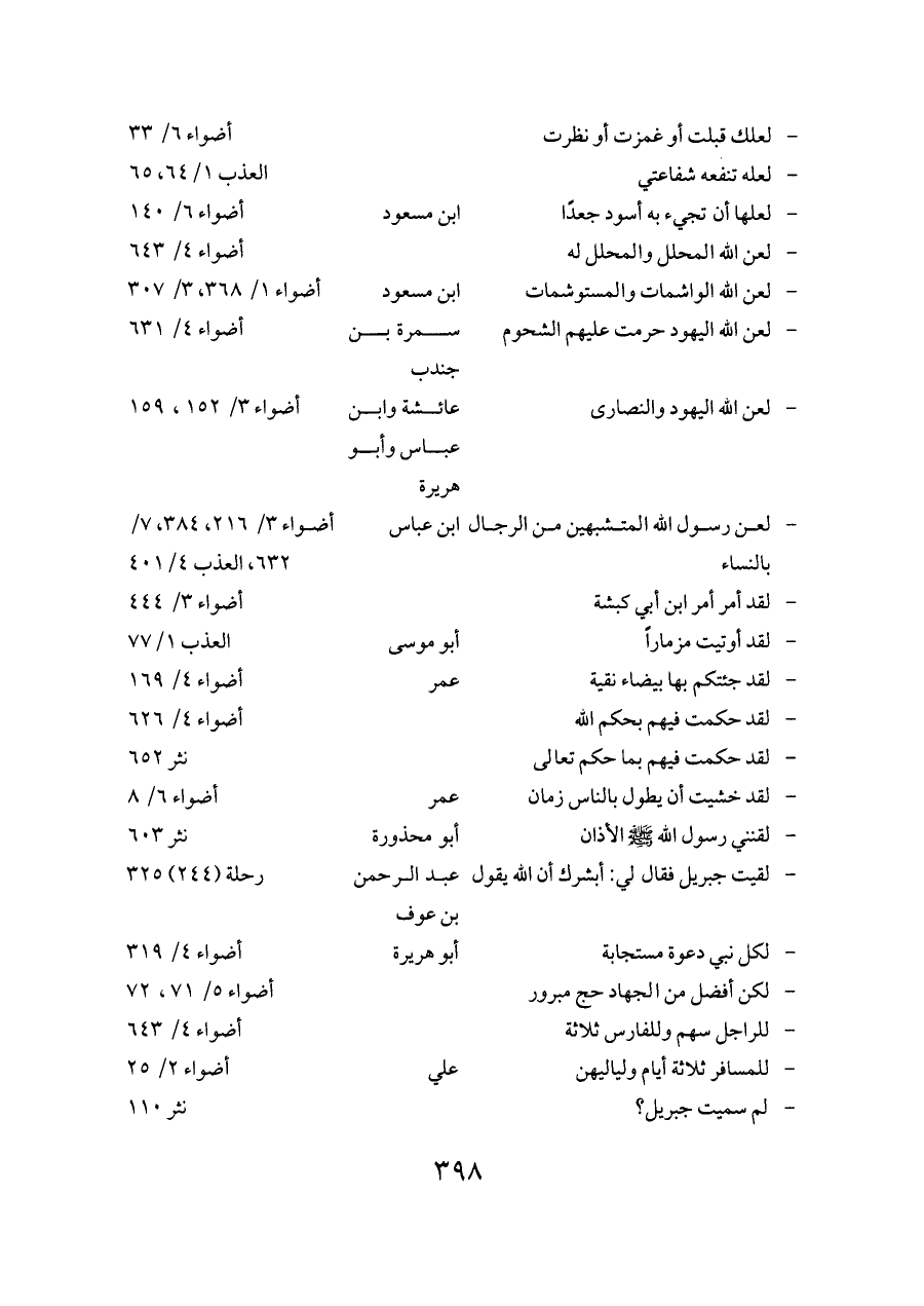 - لعن رسول الله المتشبهين من الرجال بالنساء ... ابن عباس ... أضواء ٣/ ٢١٦، ٣٨٤، ٧/ ٦٣٢، العذب ٤/ ٤٠١