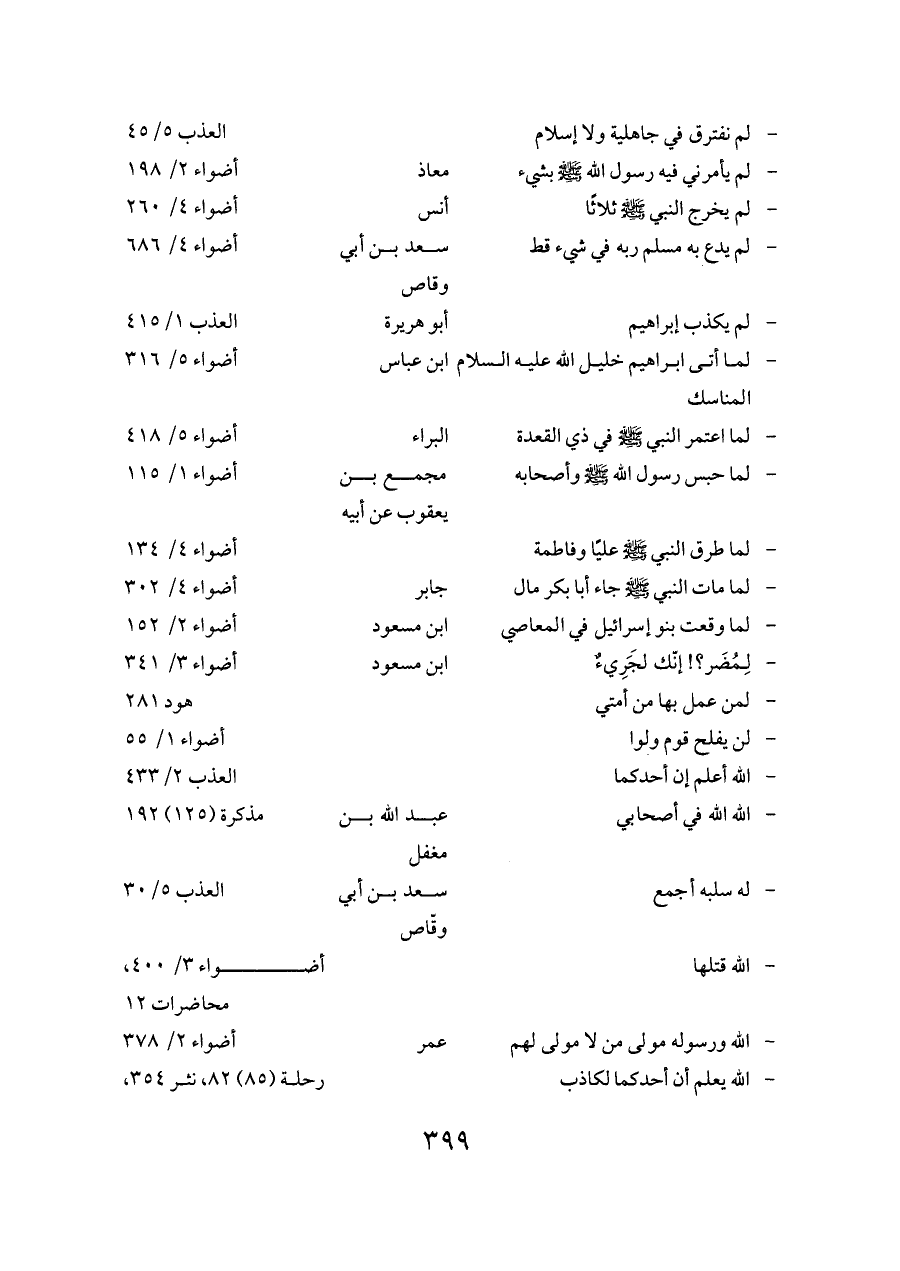 - لما اعتمر النبي - صلى الله عليه وسلم - في ذي القعدة ... البراء ... أضواء ٥/ ٤١٨