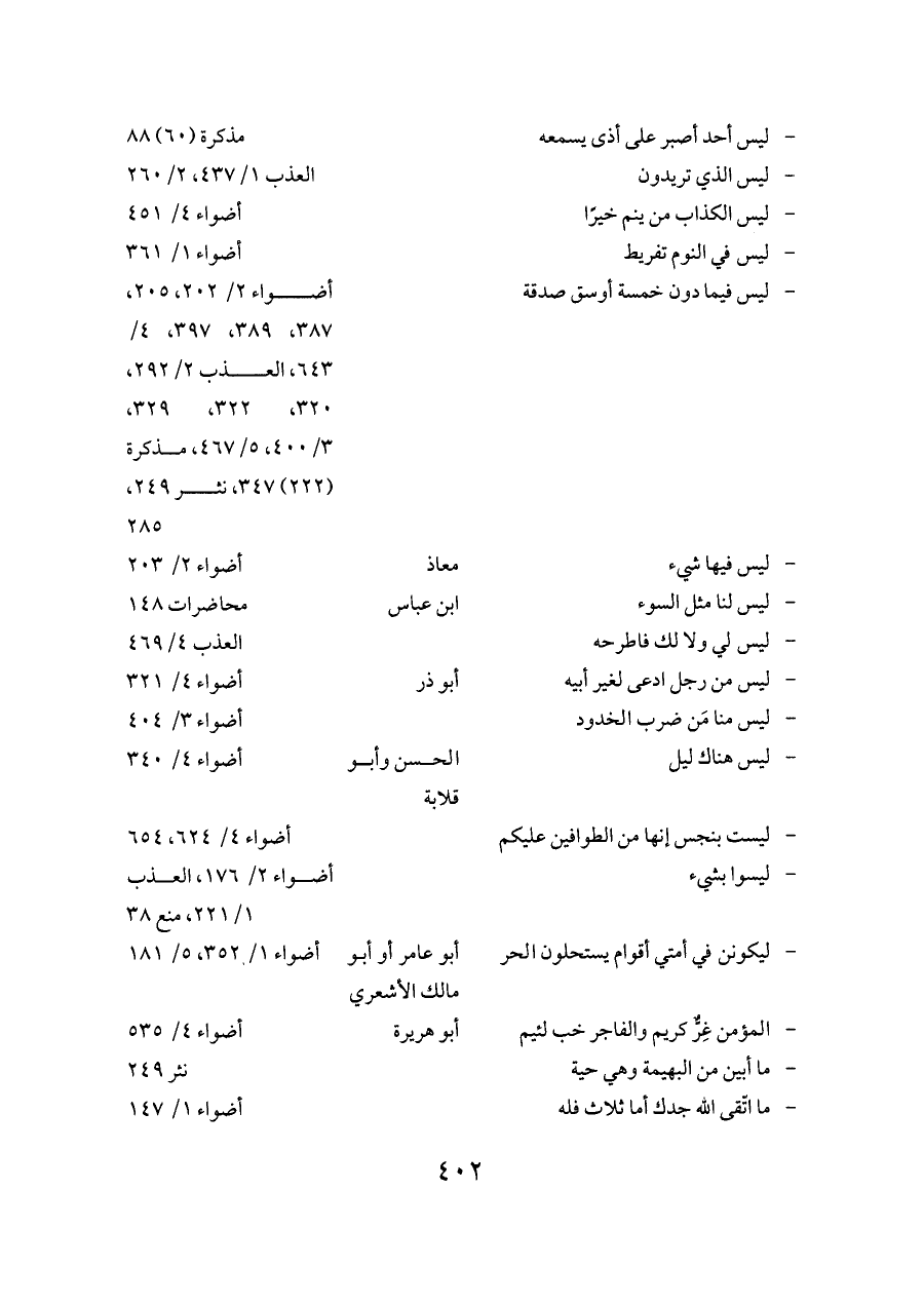- ليسوا بشيء ... أضواء ٢/ ١٧٦، العذب ١/ ٢٢١، منع ٣٨