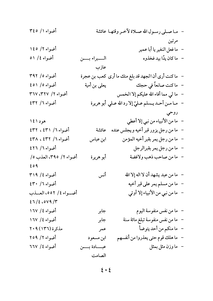 - ما من نبي من الأنبياء إلا أوتي ... أضواء ٤/ ٥٥٢، العذب ٣/ ٥٧٩، ٤/ ٤٦