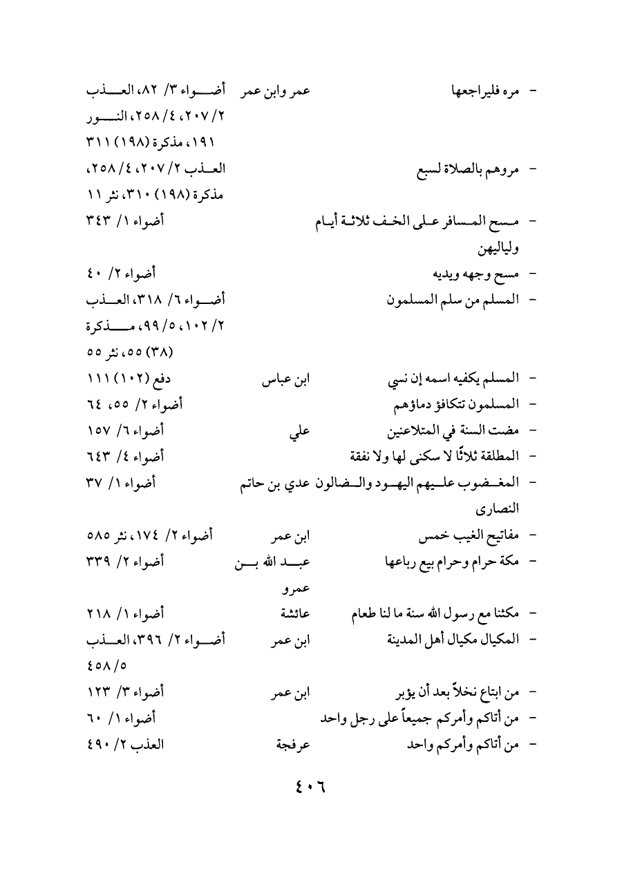 - المسلم من سلم المسلمون ... أضواء ٦/ ٣١٨، العذب ٢/ ١٠٢، ٥/ ٩٩، مذكرة (٣٨) ٥٥، نثر ٥٥