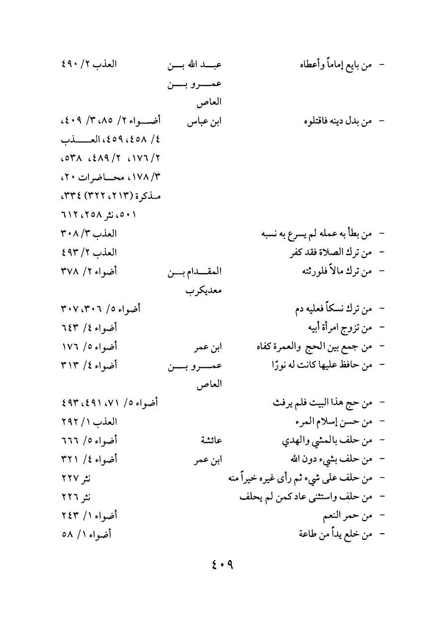 - من بدل دينه فاقتلوه ... ابن عباس ... أضواء ٢/ ٨٥، ٣/ ٤٠٩، ٤/ ٤٥٨، ٤٥٩، العذب ٢/ ١٧٦، ٢/ ٤٨٩، ٥٣٨، ٣/ ١٧٨، محاضرات ٢٠، مذكرة (٢١٣، ٣٢٢) ٣٣٤، ٥٠١، نثر ٢٥٨، ٦١٢