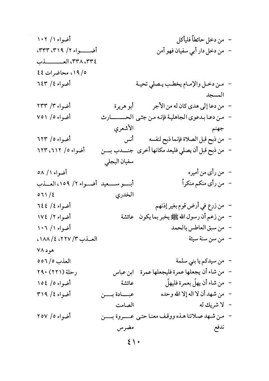- من رأى منكم منكراً ... أبو سعيد الخدري ... أضواء ٢/ ١٥٩، العذب ٤/ ٥٦١