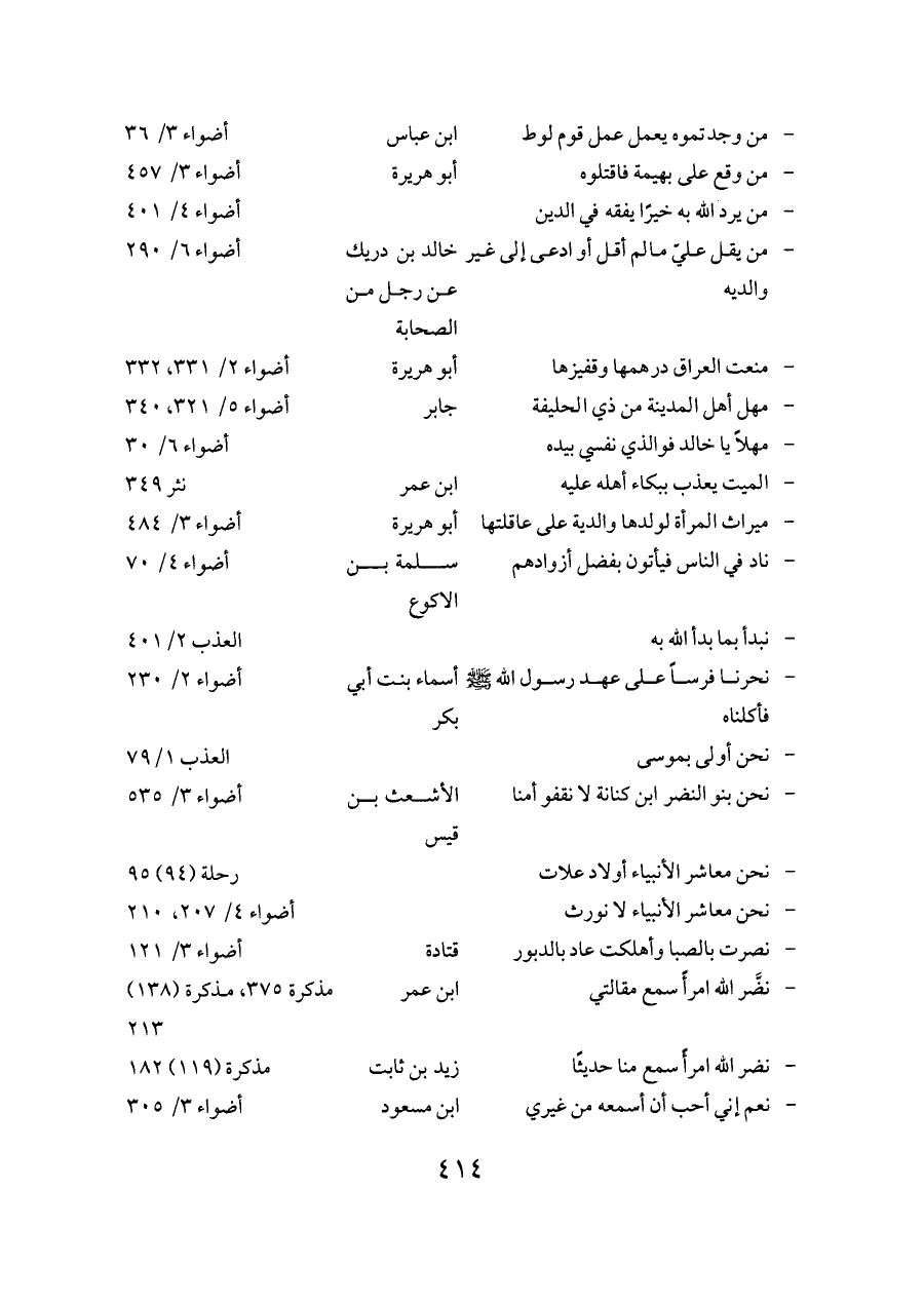 - من يقل عليّ مالم أقل أو ادعى إلى غير والديه ... خالد بن دريك عن رجل من الصحابة ... أضواء ٦/ ٢٩٠