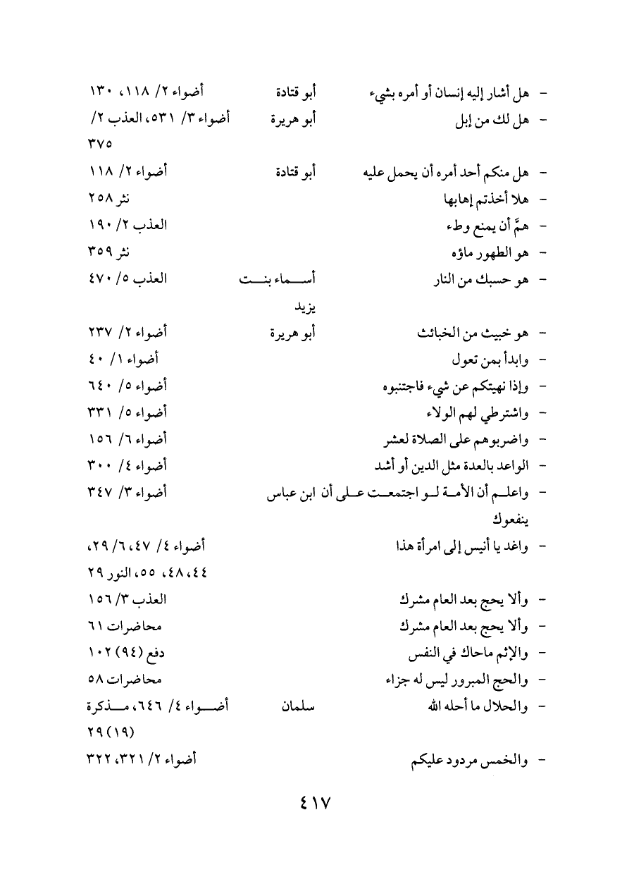 - هل لك من إبل ... أبو هريرة ... أضواء ٣/ ٥٣١، العذب ٢/ ٣٧٥
