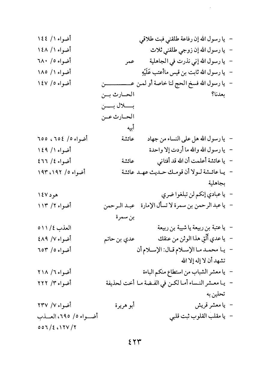 - يا مقلب القلوب ثبت قلبي ... أضواء ٥/ ٦٩٥، العذب ٢/ ١٢٧، ٤/ ٥٥٦