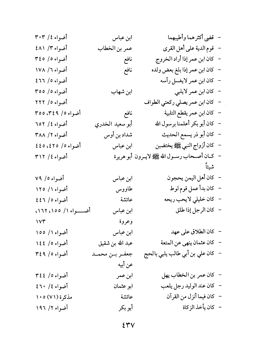 - كان ابن عمر لايلبي ... ابن شهاب ... أضواء ٥/ ٣٥٥
