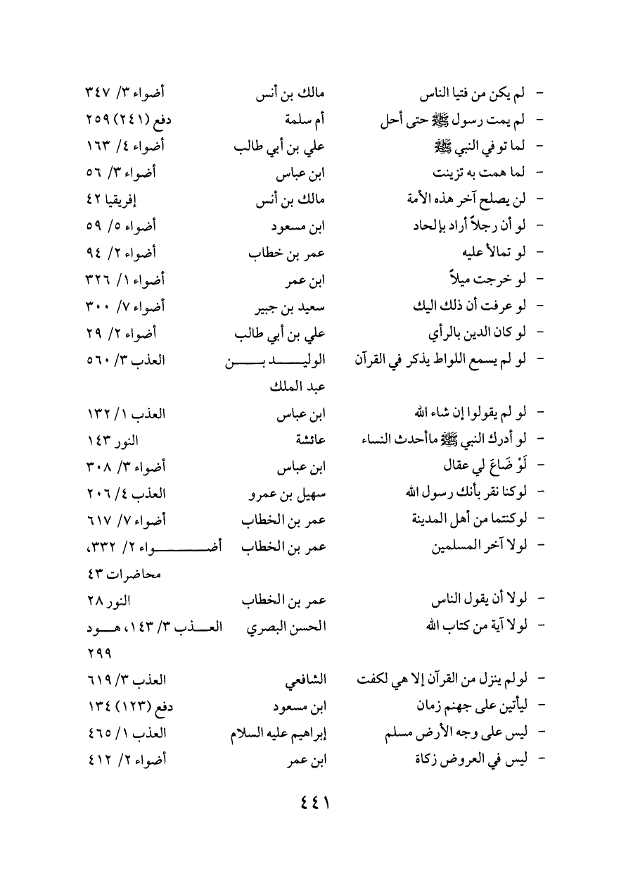 - لولا آية من كتاب الله ... الحسن البصري ... العذب ٣/ ١٤٣، هود ٢٩٩