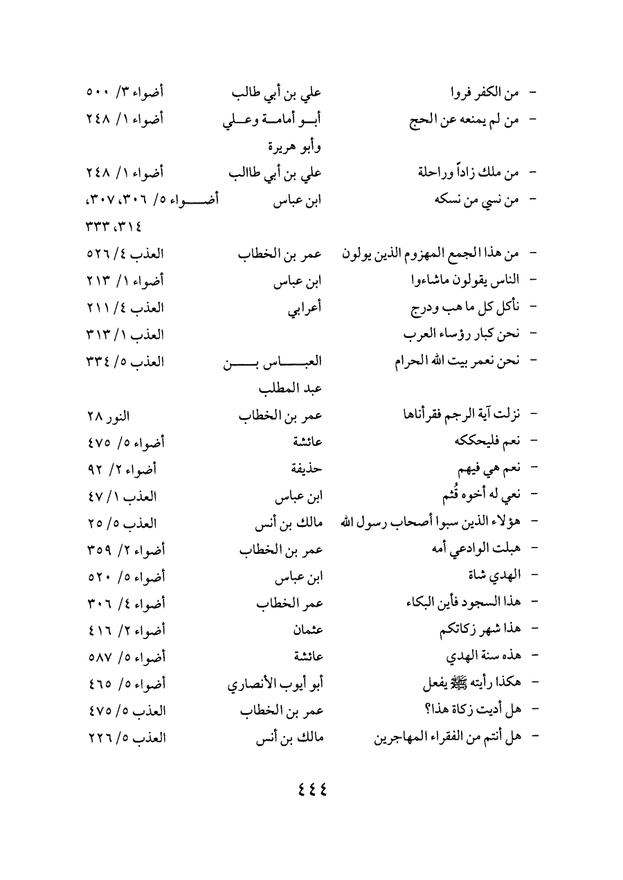 - من نسي من نسكه ... ابن عباس ... أضواء ٥/ ٣٠٦، ٣٠٧، ٣١٤، ٣٣٣