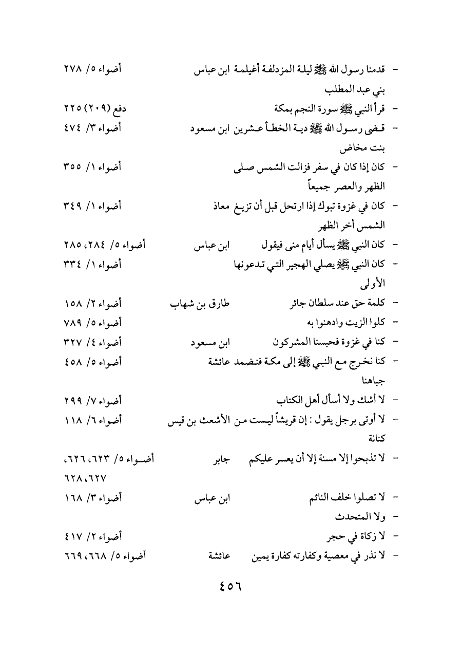- كان النبي - صلى الله عليه وسلم - يسأل أيام منى فيقول ... ابن عباس ... أضواء ٥/ ٢٨٤، ٢٨٥