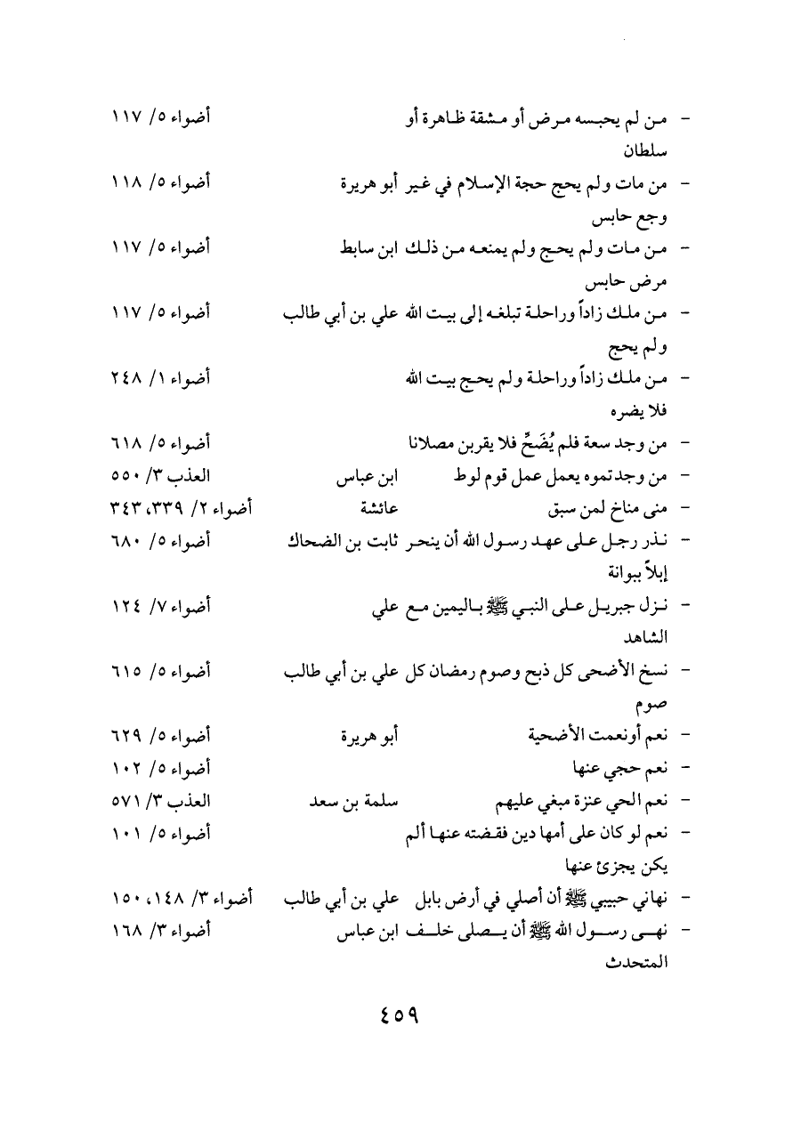- من لم يحبسه مرض أو مشقة ظاهرة أو سلطان ... أضواء ٥/ ١١٧