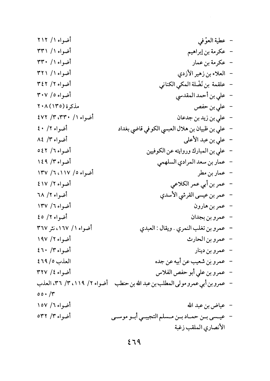 - عمرو بن أبي عمرو مولى المطلب بن عبد الله بن حنطب ... أضواء ٢/ ١١٩، ٣/ ٣٦، العذب ٣/ ٥٥٠