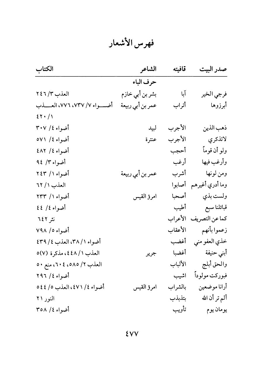 صدر البيت ... قافيته ... الشاعر ... الكتاب