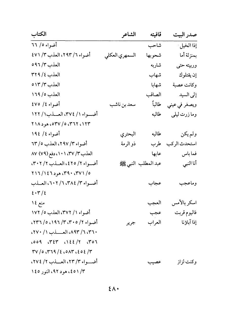 إذا آباؤنا ... العراب ... جرير ... أضواء ٢/ ٣٠٥، ٣/ ١٩٦، ٥/ ٢٣٦، ٣٦٠، ٦/ ٨٩٣، العذب ١/ ٢٧٠، ٣٥٦، ٢/ ١٤٤، ٣٤٣، ٥٥٩، ٣/ ٤٥٤، ٥٨٣، ٤/ ٣٦٩، ٥/ ٣٧